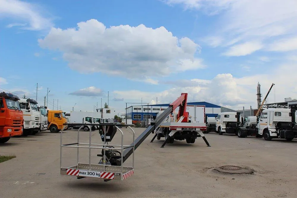 - Безопасность. В составе автовышки предусмотрен насос аварийного типа, который станет незаменимым помощником во время непредвиденных ситуаций. Стабилизация опор при выполнении работ осуществляется с помощью специальной системы безопасности. В комплектацию подъёмника также входит стабилизатор устойчивости, рулевая колонка и прочие компоненты. Предусмотрен ящик для инструментов. Конструкция автовышки исключает появление коррозии и повреждений механического характера.